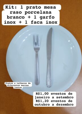 Obs: Kit de Prato porcelana raso + 1 garfo + 1 faca ( De Outubro a Dezembro ) = R$1,20